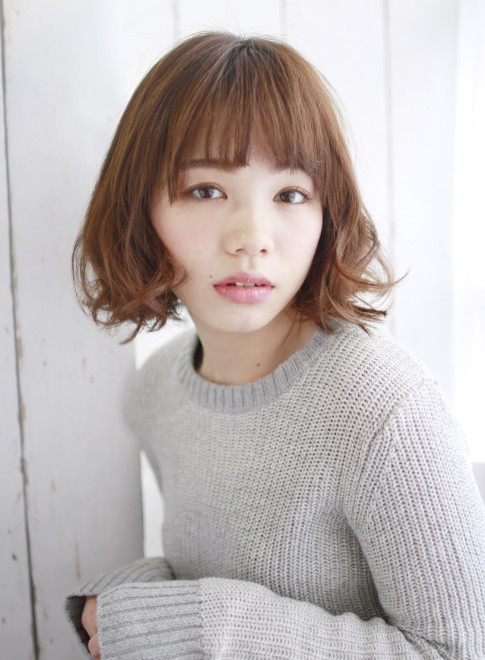 斜め前髪が小顔効果を発揮!分け目はあえて気にせずに、重めにふわっと仕上げることでぺたんこ解消にも◎。