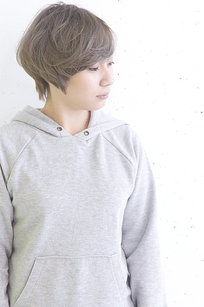 しっかり赤味を抑えたくすみのはっきりしたクリーミーアッシュなら、断然ショートに!