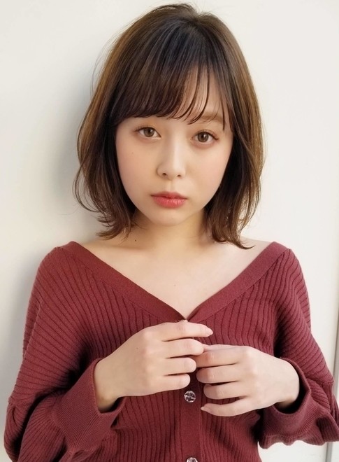 上品で清楚な印象のスタイルです。厚みのあるボブに、前髪は透け感を作って軽やかに。赤みを抑えたカラーリングで、透明感と髪の柔らかさを引き立てています。
