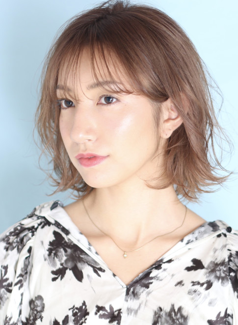 ふわっと空気感のあるボブは、「アッシュベージュ」にして透明感をプラス。これだけ束感があると重たく見えそうなボブですが、透明感のある髪色のおかげで軽やかに仕上がっています。