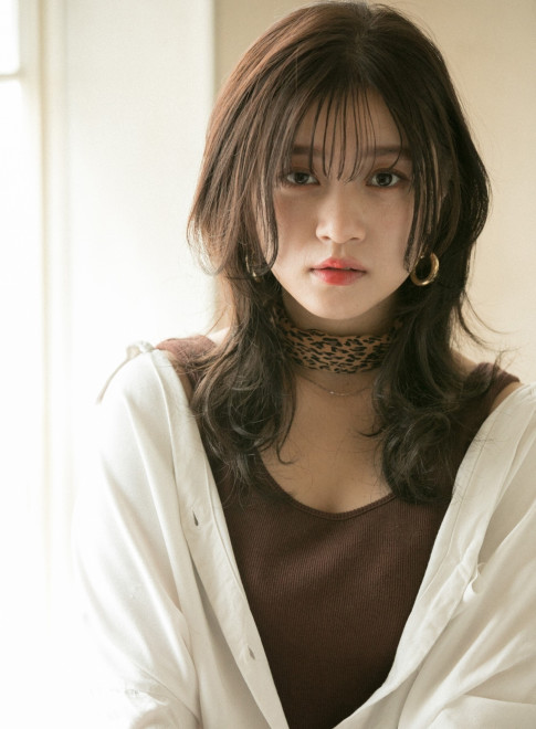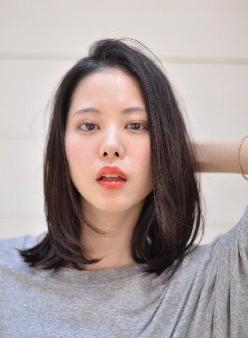 ストレートベースのシンプルなセミディスタイルです。あえての黒髪でナチュラルな雰囲気に。巻いたり、外ハネにしたりと、アレンジも楽しめます。