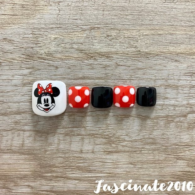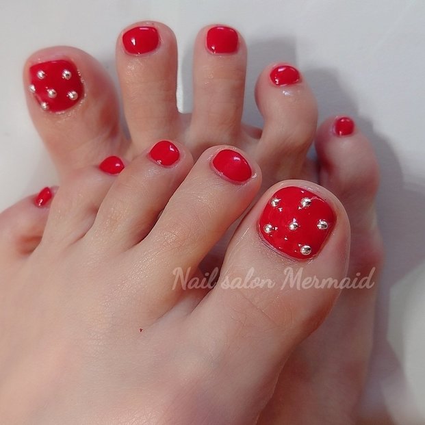 赤のペディキュアにモノクロの水玉デザインをコーディネート。どことなくパリジェンヌっぽいルックがオシャレです。こっそりハートを忍ばせて、足元にお守りを添えるのも素敵ですね♡