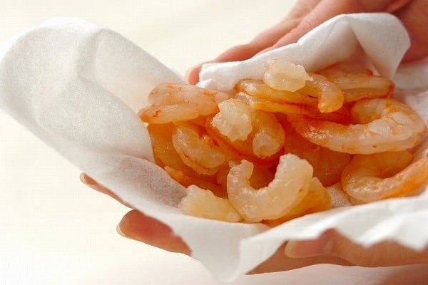 ・むきエビは背ワタを取り、分量外の塩水できれいに洗い、水気を拭き取る。