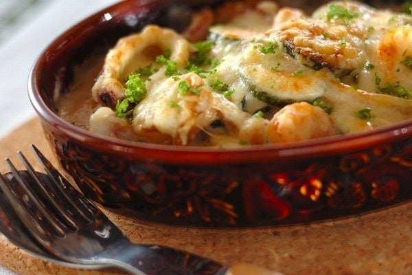 具沢山の「濃厚クリーミー!ズッキーニと魚介のチーズ焼き」で、旬のズッキーニを味わってみてください。
