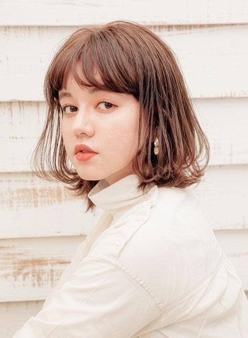 少し落ち着いた色味がありながら、明るいベージュトーンでまとめたミルクティーカラー。大人っぽさとかわいさが両立して、大人女子にぴったりな髪色です。長さを変えず、軽やかな印象に仕上げてくれます。