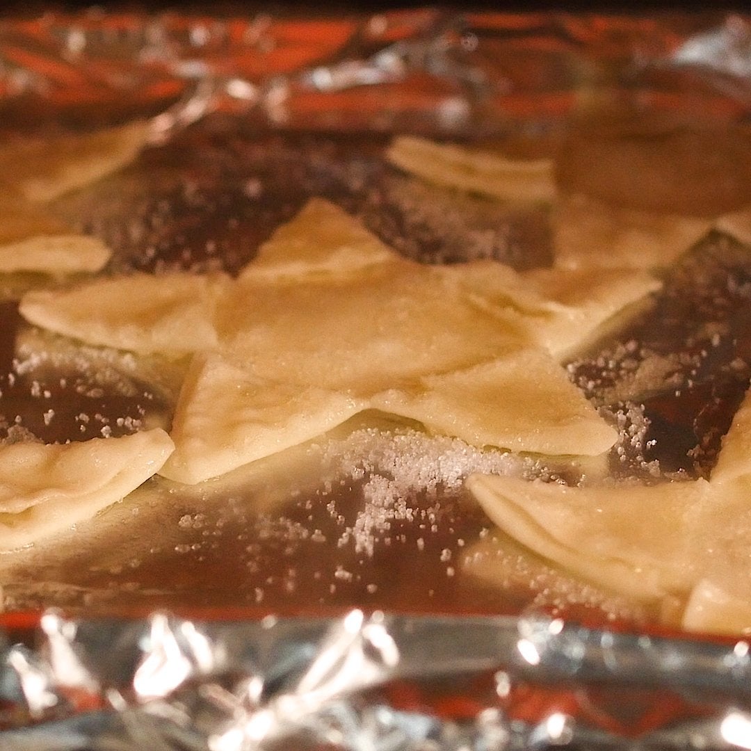溶かしたバターを①の両面に塗り、グラニュー糖をまぶします。