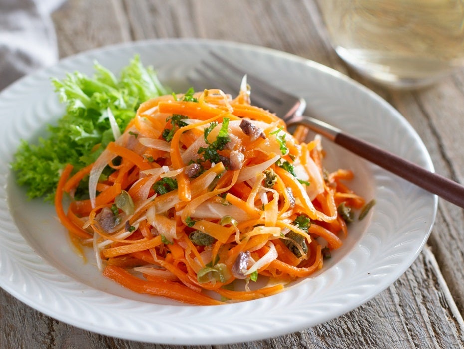 にんじんのサラダにアンチョビを加えました。ヘルシーなサラダにコクとうま味がプラスされて、存在感のあるおつまみになります。