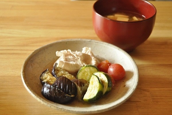 今回ご紹介する料理は「夏野菜と豚肉の出汁浸し」と、その時に出る「くず野菜」を利用した「ベジブロスみそ汁」の二品。出汁をとった昆布も一緒に煮込むので、みそ汁のほか、出汁浸しなどの和食にもおすすめです。