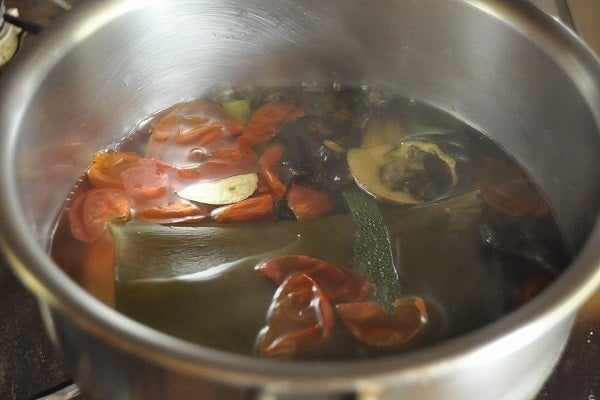 「出汁をとろう!」と気負うのではなく、料理の過程で出るくず野菜や魚の骨などをつかって自然な流れでとれるベジブロスの出汁。気軽に試してみてはいかがでしょうか。