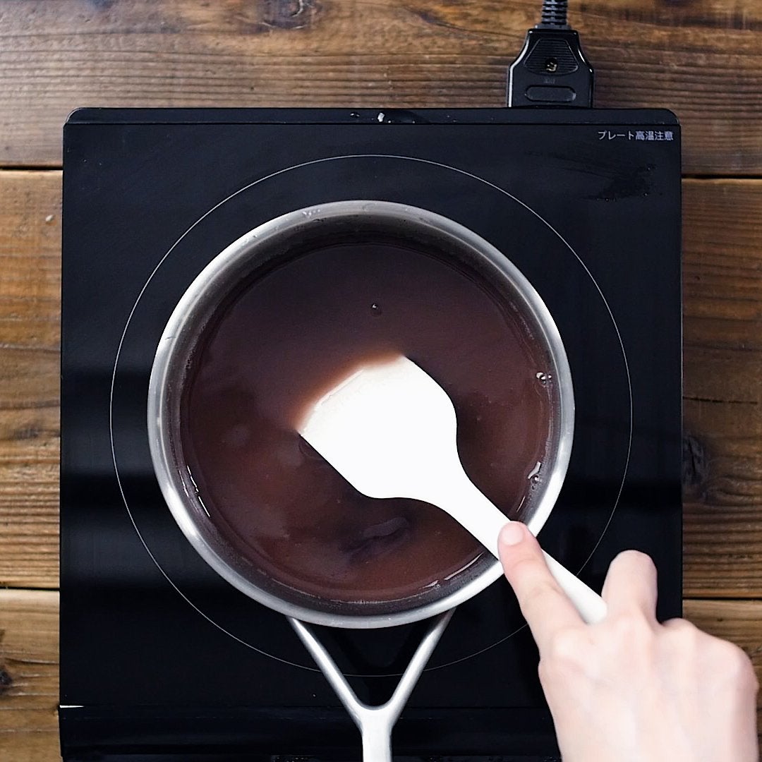 こしあんを加えて煮溶かします。再び沸騰したら火を止めます。