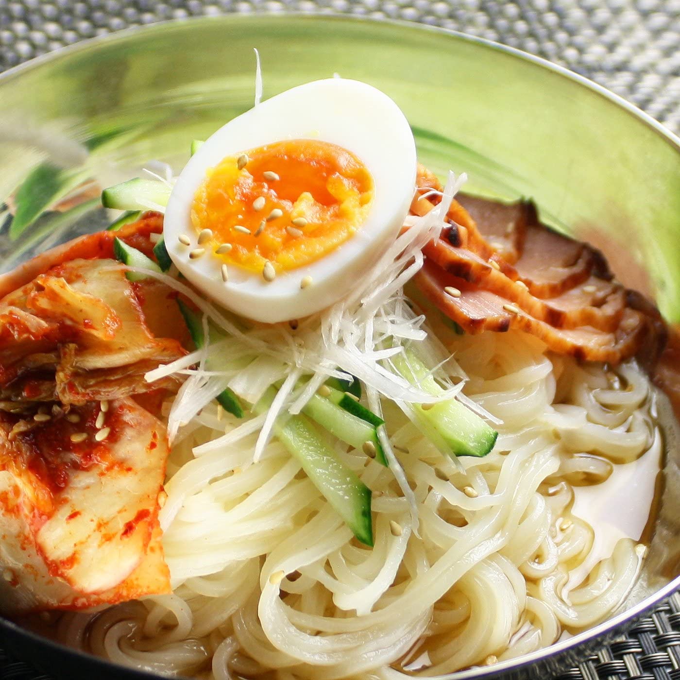 韓国にルーツを持つピリ辛な麺料理、冷麺。日本では盛岡冷麺などが有名ですね。お酢の酸味が効いたスープにキムチがよく合い、さっぱりと食べられて夏にピッタリの麺料理です。
