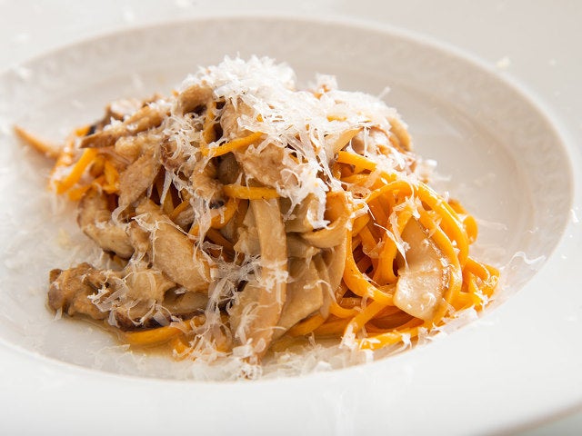 「タィアリン(タヤリン)」とは、イタリアの北西部・ピエモンテ州を代表する手打ちパスタの一つ。語源はイタリア語で「細切り」を意味する「タリオリーニ(Tagliolini)」。卵の卵黄のみを贅沢に練りこんで作っており、濃厚な風味と歯切れのよさが特徴だ。