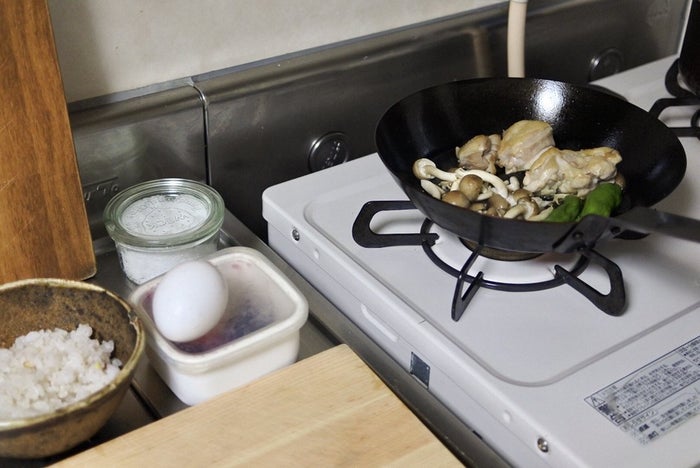 ヨガが終わったら朝ごはんの準備。“朝ごはんを楽しみに起きている” と言ってもいいほど、自分にとっては一日のなかで大きな楽しみ!!!この日は、鶏もも肉としめじとししとうを焼いたもの、たまご、ごはん、おばあちゃんが漬けた梅干しで和食。お味噌汁もよく作ります。時間がなければTKGだけ、パンだけ、とかもよくありますが……。 いつもストックとして、冷蔵庫にたまご、豆腐、お漬物。冷凍庫には軽い1膳分のごはん、おいしいパン屋のパン(カンパーニュかバゲットが多い)を常備。なんとかこれだけあれば、その日の気分に合わせて和洋どちらかの朝ごはんが食べられるので(笑)。パンはハード系のパンが好きなので、好きなお店に行ったときに多めに買って冷凍しています。
