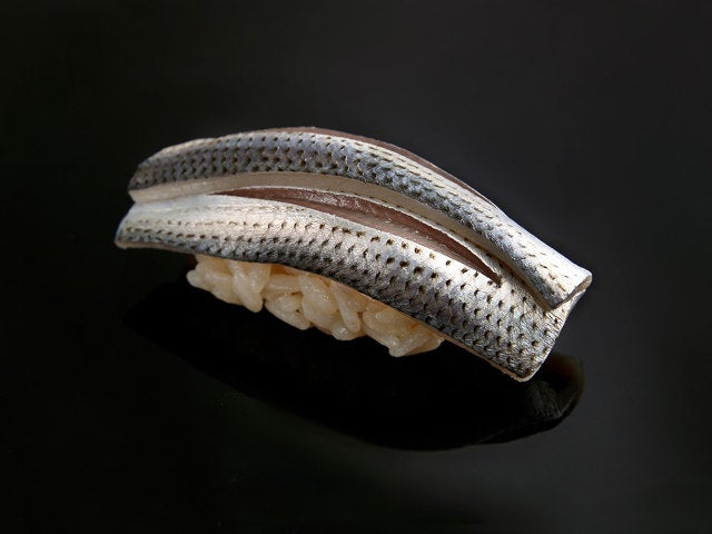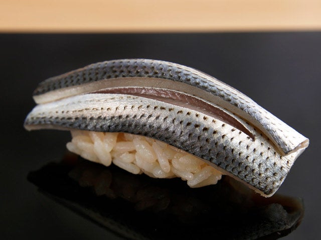コクのある光り物独特の脂のうまみと酢と薬味の爽やかな組み合わせがよく、スターターとしてはもちろん、握りの合間の口直しにもおすすめの一品だ。お好みでワサビを添えていただいても、より後味がすっきりしてこれまたおいしい。
