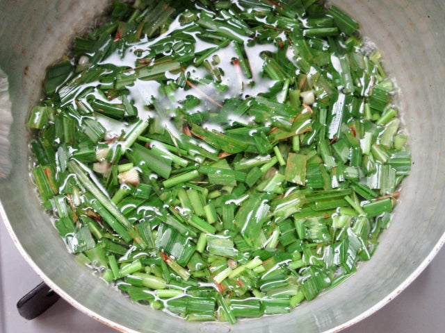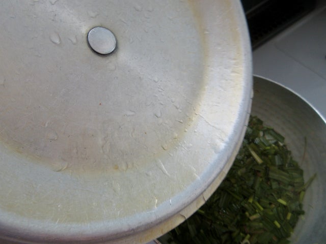 ② 鍋に湯を沸かし、①のレモングラスを入れます。蓋をして、弱火で5分ほど煮出します。