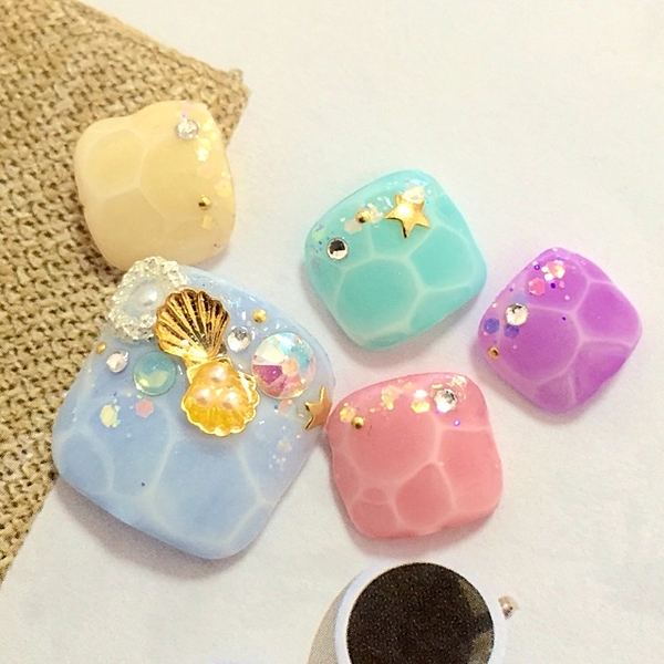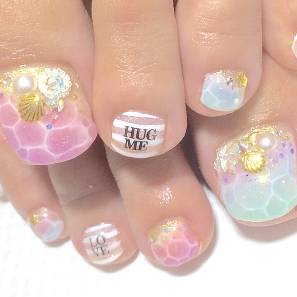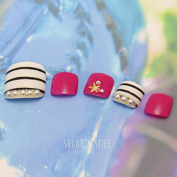時間ない〜サンダルで家を出よう〜!と飛び出した時、つま先ノーチェックでした…なんて、家を出てから後悔してちゃ遅いですよね。靴下×サンダルブームもありついついフットネイルに気が向かないけど、サンダルや海など素足を出す機会はこれからたくさん!可愛い私は、フットネイルも抜かりなくね♡