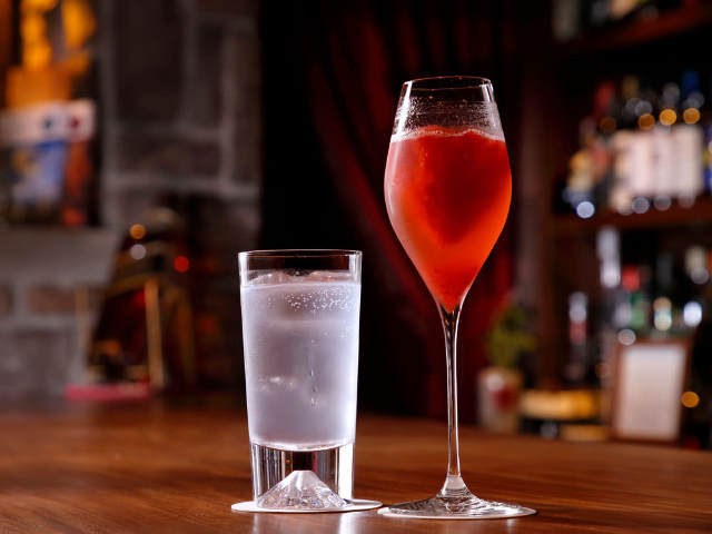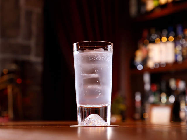 底に富士山がそびえるグラスに、シュワシュワと水泡が弾け、まるで生きているような「ジン&トニック」だ。