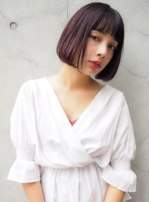 乾かすだけでキマる小顔効果抜群の平行ボブスタイル。前髪はあえてプツッとしたカットラインを残しています。スタイリングはタイトに仕上げるとオシャレで可愛いスタイルに。