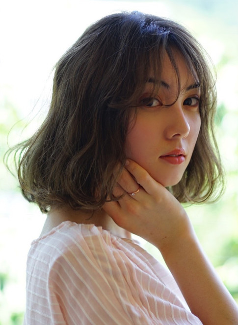 外国人のくせ毛のような質感の無造作ボブです。柔らかな毛流れには、表情を明るく見せてくれる効果も。カラーはベージュ系で、透明感のある髪色に。