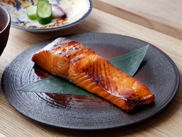 メインの料理は3品から1品選べ、取材時は「銀鮭柚庵焼き」(写真上)。魚は170gとボリュームがあり、男性でも食べごたえ十分だ。ちなみに、山形県産「はえぬき」を使ったご飯と、肉そぼろは食べ放題。国産の生ショウガと北海道産の生醤油、徳島産の和三盆を使った肉そぼろは自家製で評判が非常に高い。やさしく上品な味わいの調味料を使いながら、ショウガのピリっとした風味はご飯がすすむ。