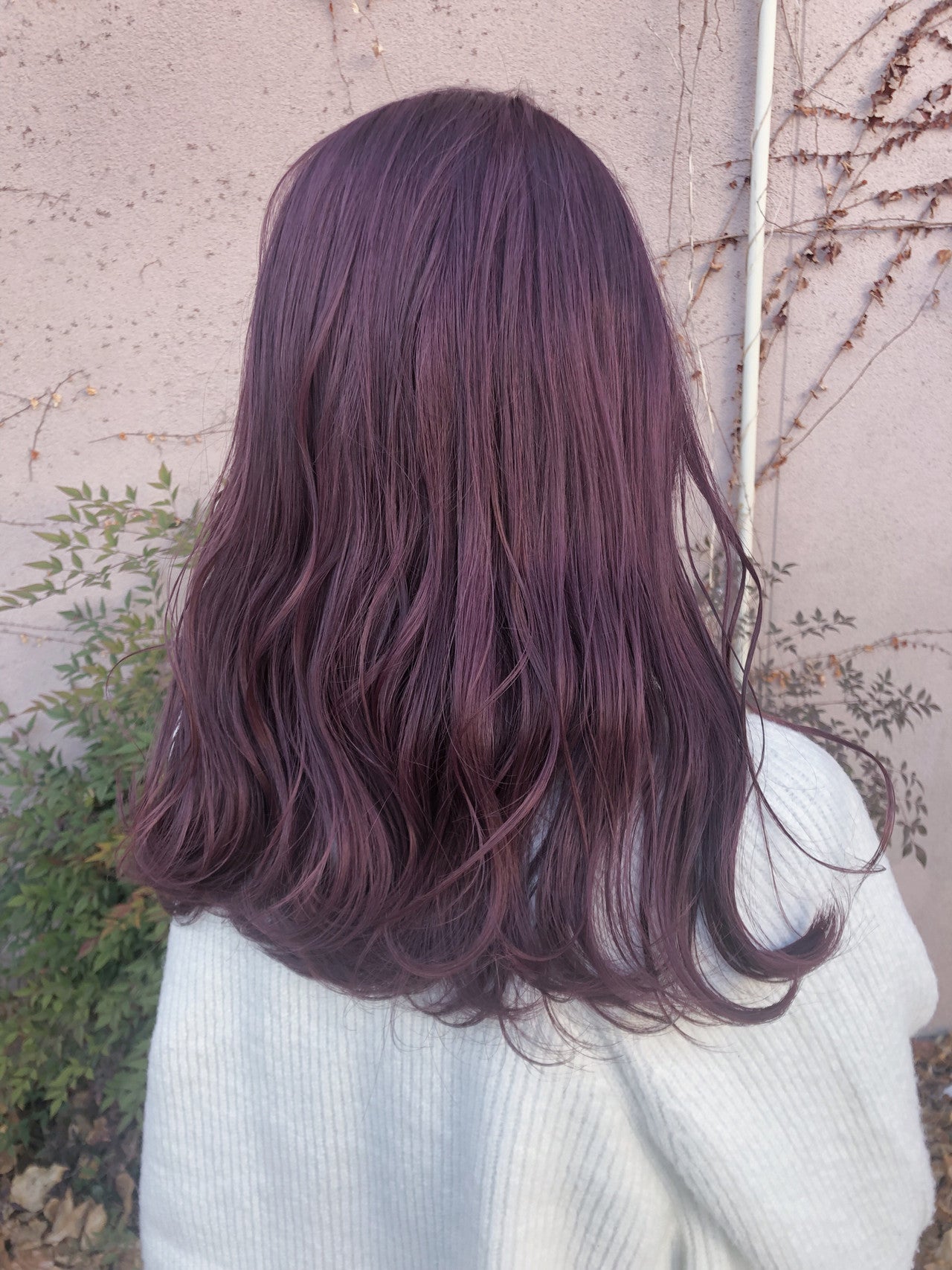 パープル強めのラベンダーカラーは大人可愛いオシャレカラー。暗めのヘアカラーが好きな人におすすめです。