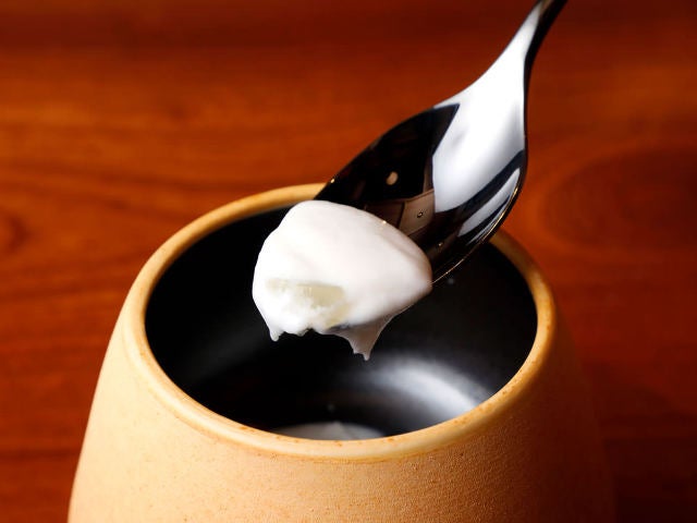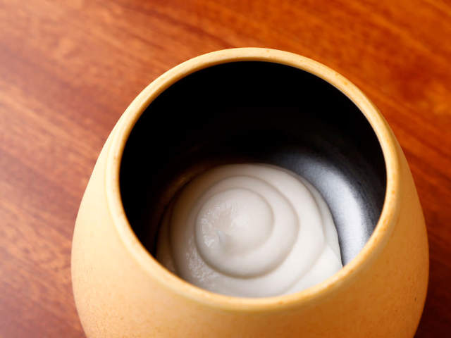 新玉ネギの細胞を壊さぬよう鋼の和包丁で切り、1日ほど置いて水分を取る。それをゆっくりと1/10程度になるまで煮詰め、そこに1人前2mlの生クリームと合わせる。