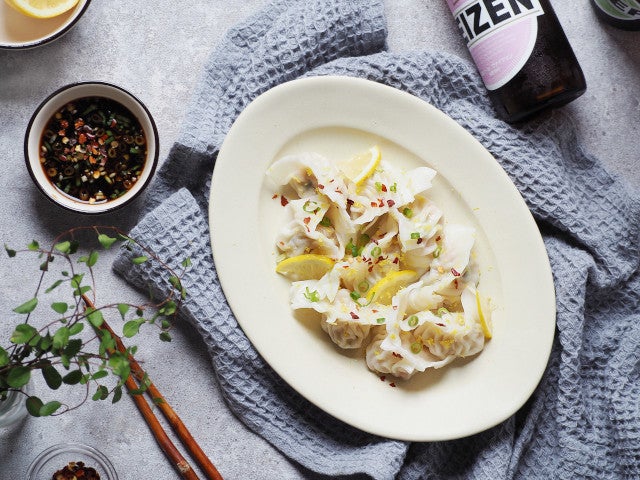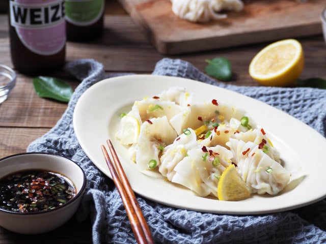 ② 海老とレモンのヘルシー水餃子に添えて、出来上がり。