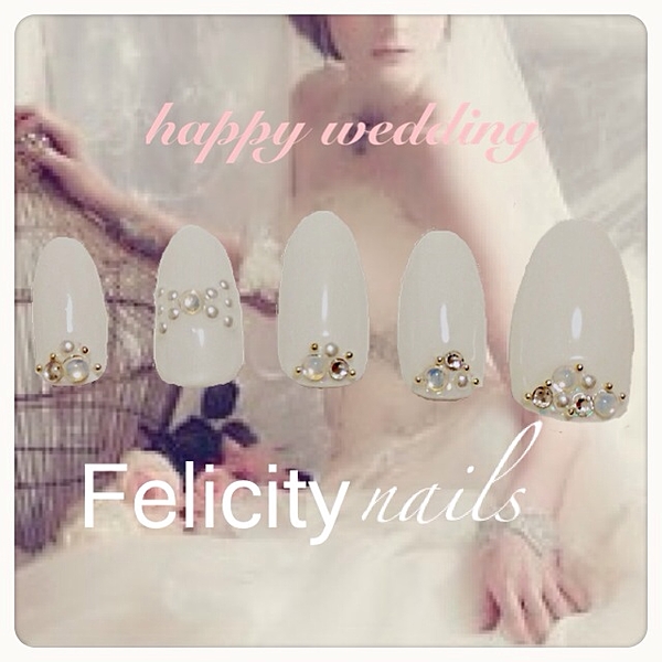 シンプルなベースに貼るだけで、華やかなブライダルネイルが出来ちゃいます♪