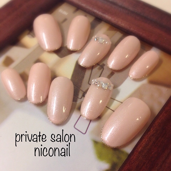 フレンチラインにールドのラメラインを細く入れて、さりげないキラキラ感をプラス♪