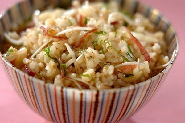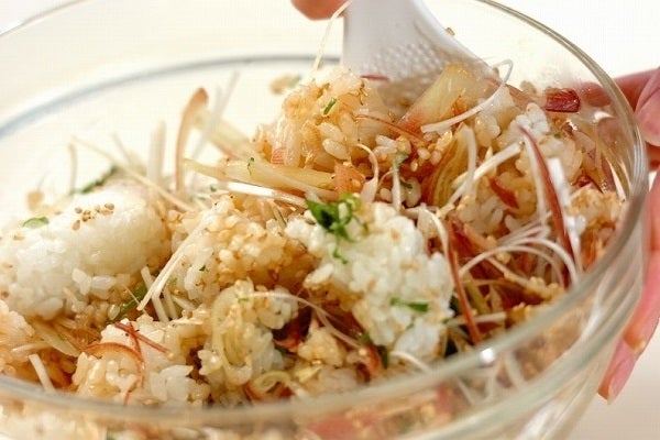 そこに6月から10月が旬のミョウガを加えて作る「薬味たっぷりの混ぜご飯」は、薬味がたくさん入ったさっぱり味の混ぜご飯です。