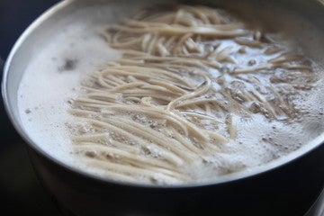 生そばではなく、あらかじめ茹でてある『ゆでそば』です。沸騰した熱湯にゆでそばを入れて、麺がほぐれたら火を止めるだけのお手軽な商品です。