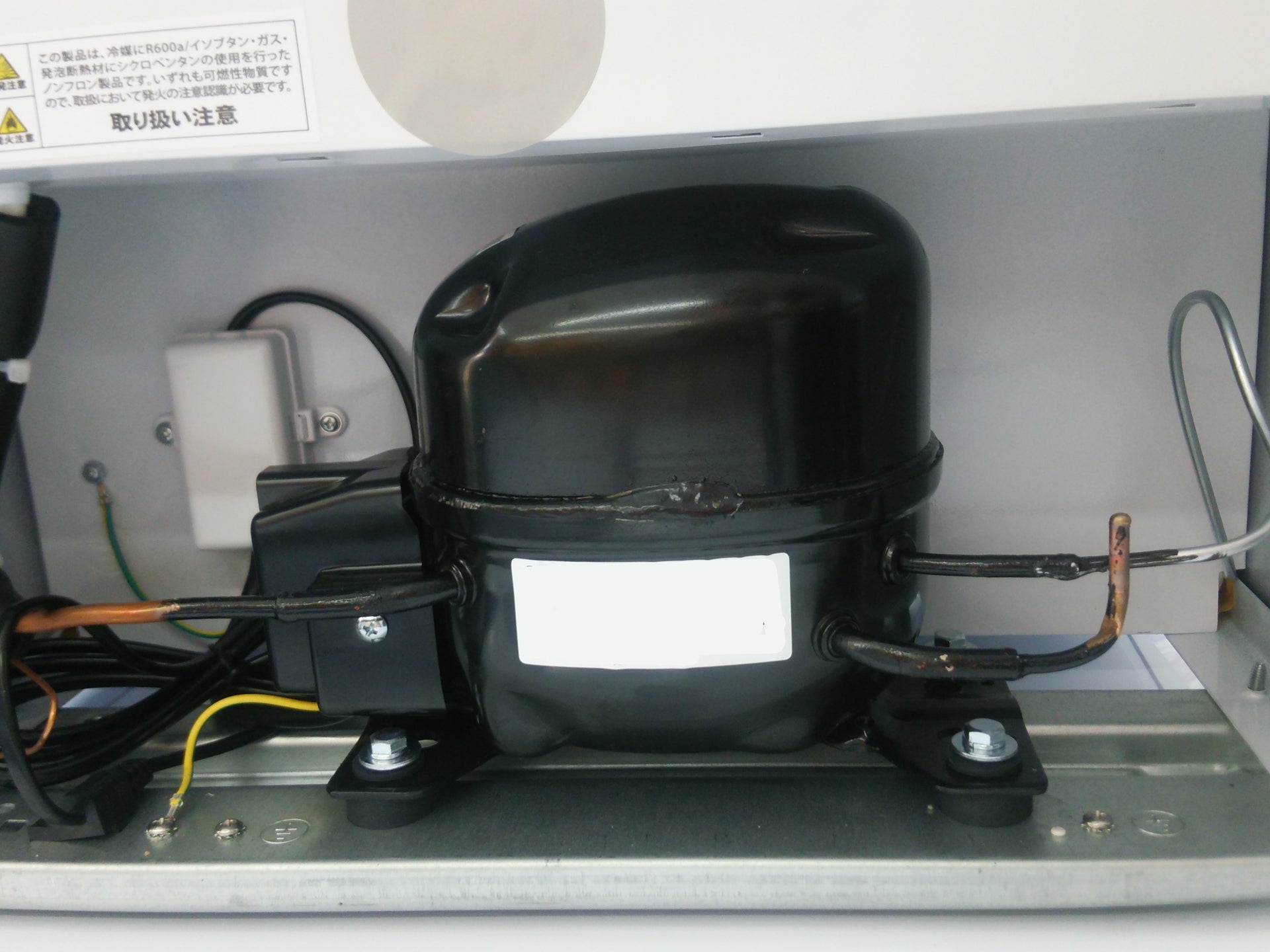 コンプレッサーは冷蔵庫を冷やす仕組みである冷媒を圧縮する機器で、圧縮時に熱を放出するため冷蔵庫の外側に取り付けられています。このコンプレッサーが作動するときに「ブーン」という低い音が一定間隔で鳴ります。