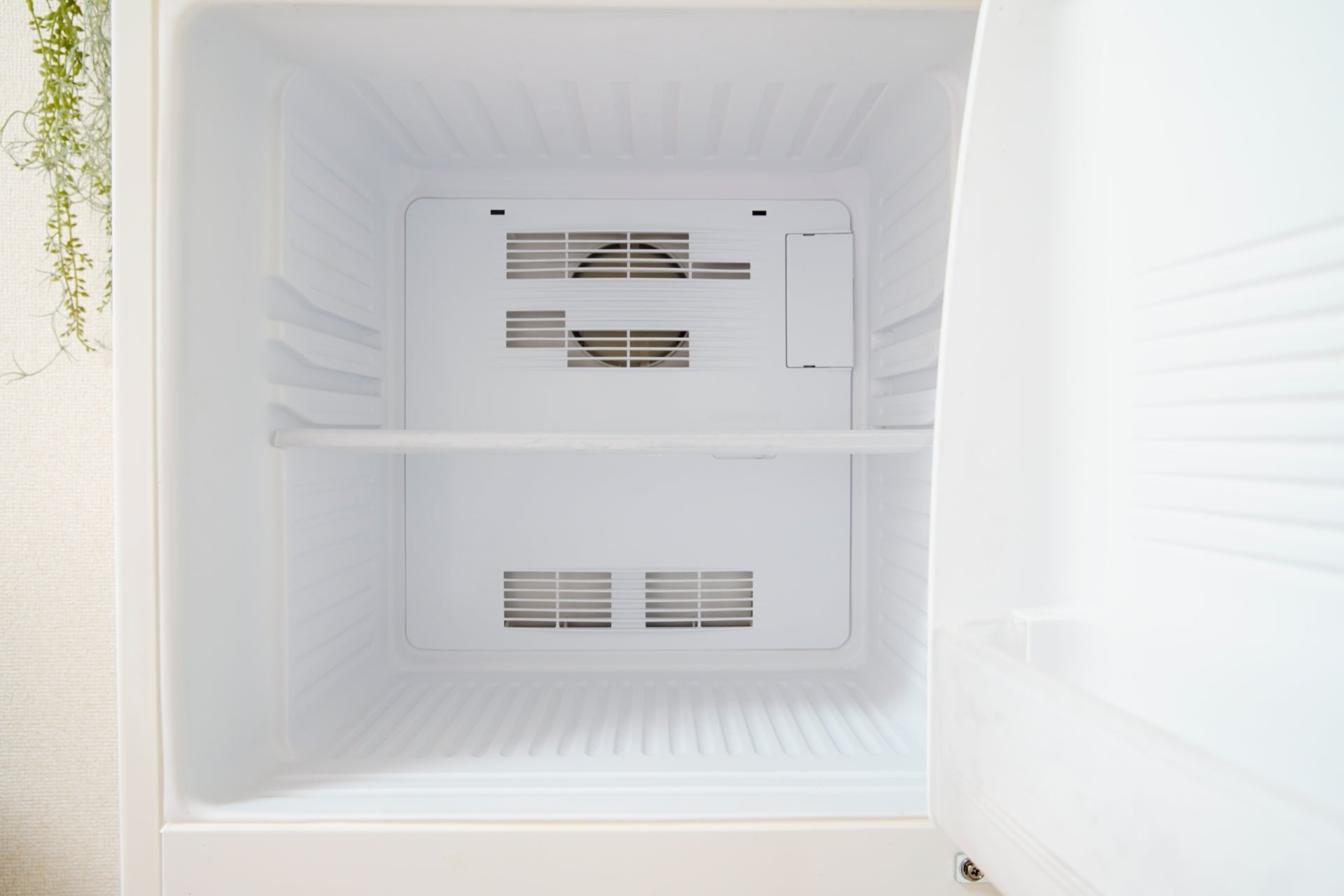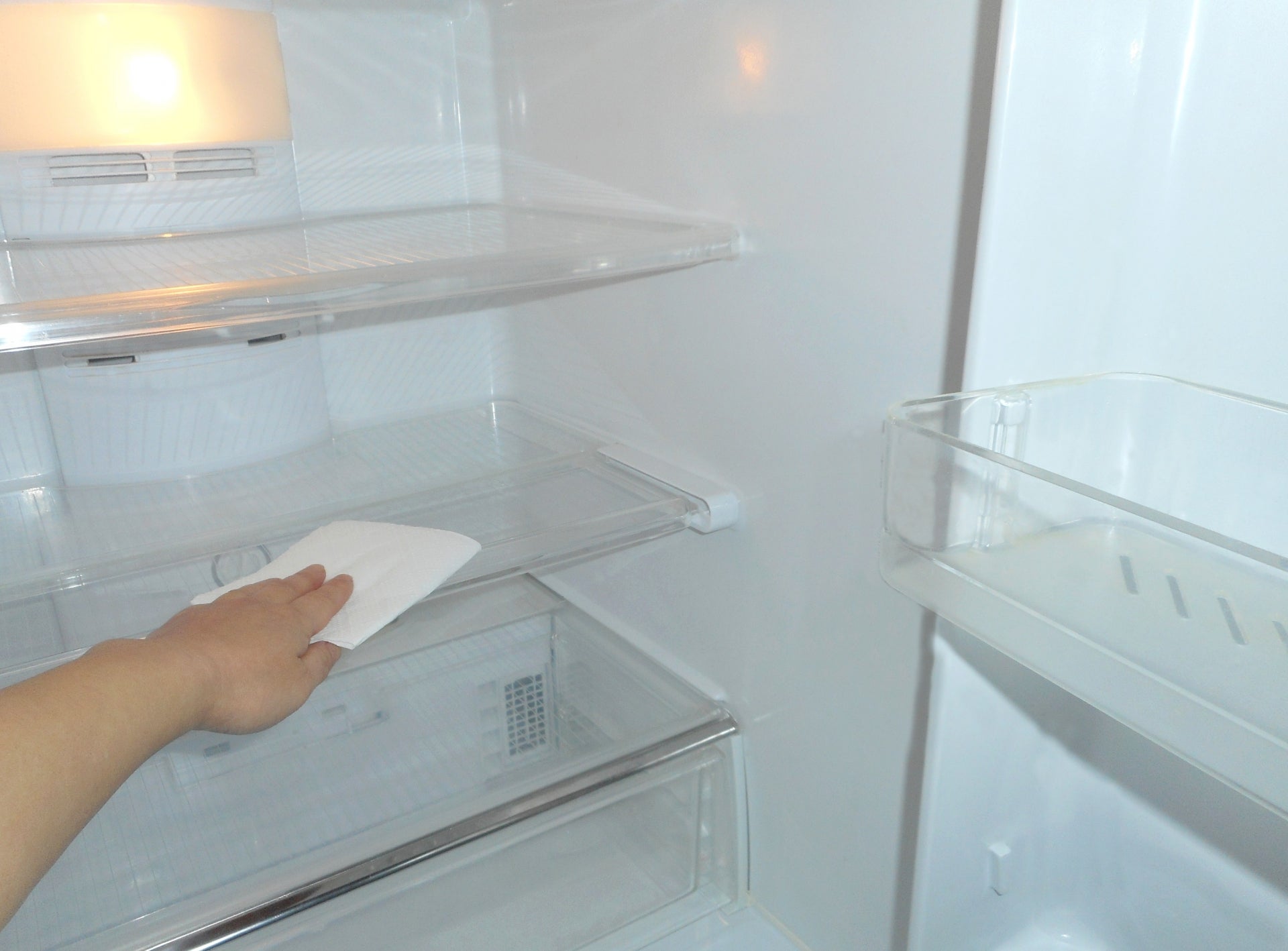 冷蔵庫の周りに埃がたまってくると、コンプレッサーの熱を放出するスペースが減ってしまい、異音の原因になります。冷蔵庫の下にも埃がたまりやすいので、ほうきなどでしっかりと取り除きます。キャスターがついている場合は移動させて掃除させると早いかもしれません。冷蔵庫内は汚れすぎると冷気の吹き出し口などに影響を及ぼす場合もありますので清潔に保ちましょう。