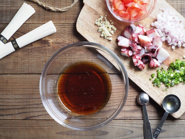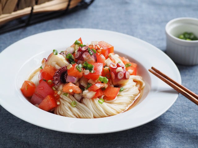 蛸とトマトのガーリックそうめん