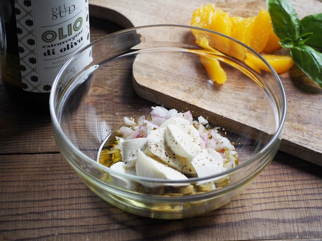 各15~20分オレンジとモッツアレラチーズのカプレーゼ風冷製パスタ