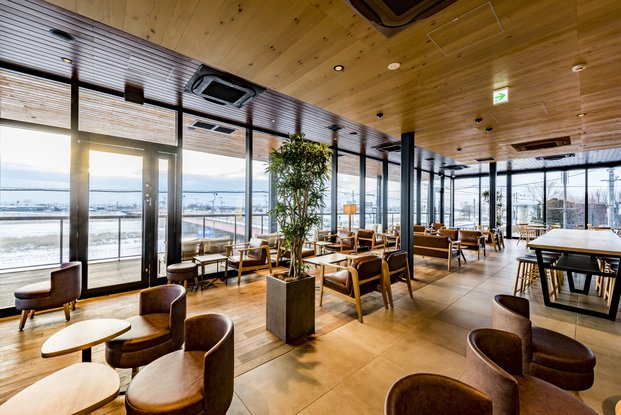 新釧路川を臨む2階建ての店舗です。日本で最もシアトルに近い店舗ということから、シアトルとの繋がりを感じることができるデザインになっています。