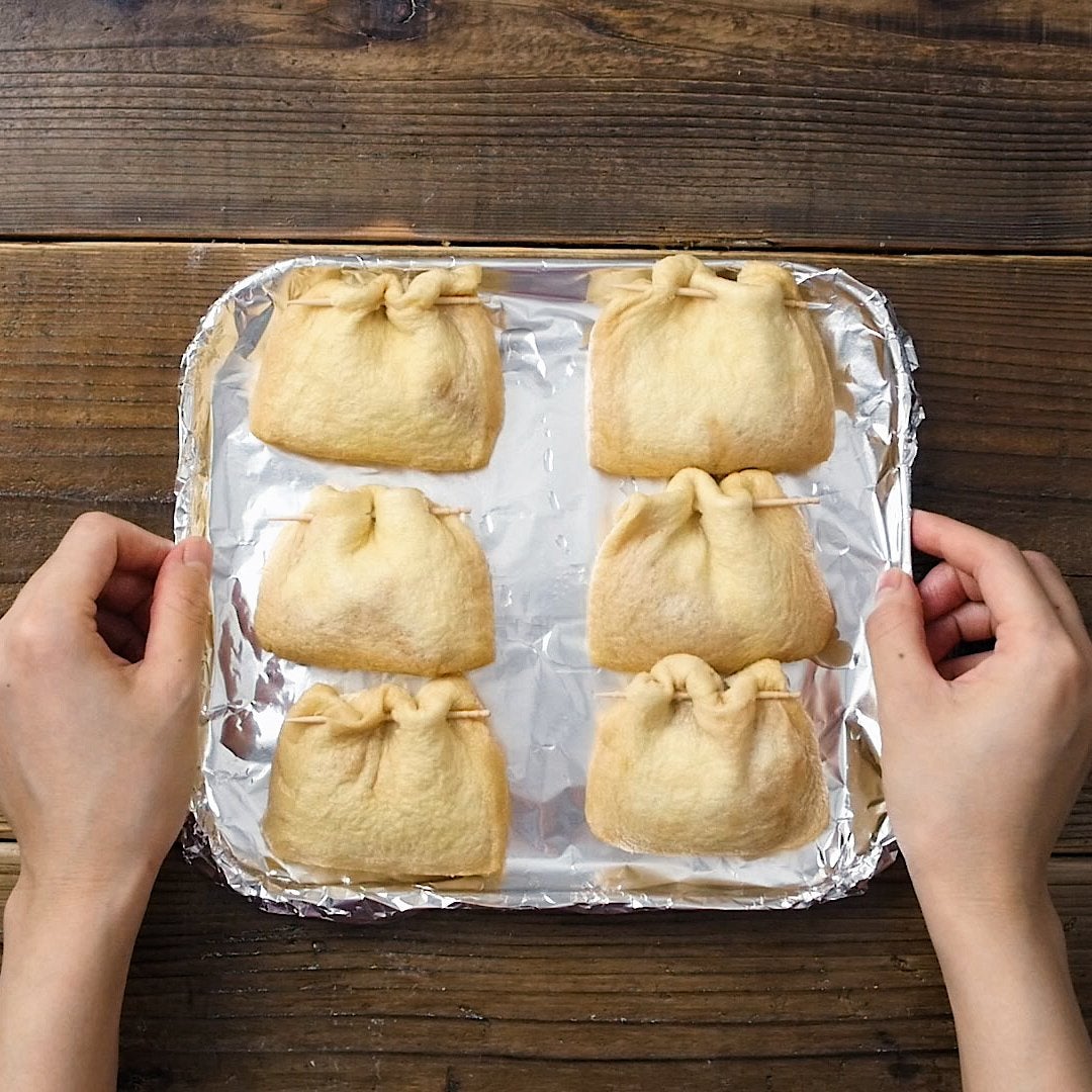 ・油揚げの大きさによって中に入れる具材の量を調節してください。