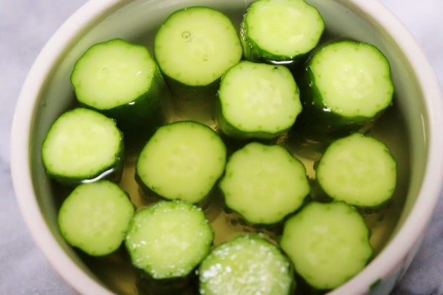 流水解凍といっても冷凍きゅうりに直接、水をかけるのではなく保存用袋のままボールなどに入れて少しずつ水を流し入れる方法です。