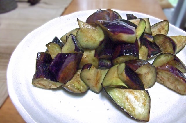冷凍したなすは繊維が切れていて味が染み込みやすいのが特徴です。