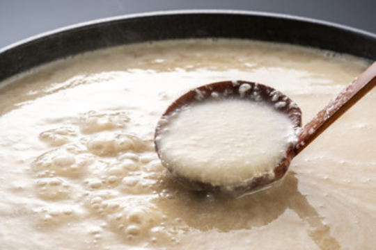 手作りでつくられた甘酒は「生甘酒」と呼ばれます。できたての生甘酒は米麹の成分が最も多く生きていて、からだに活動のエネルギー源として吸収されます。