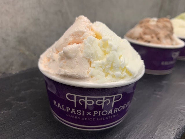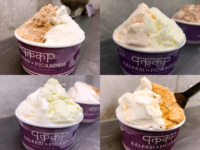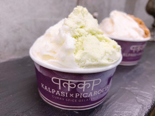 古くからの友人で、2019年8月、京都で人気のジェラート専門店『PICAROEIS(ピカロアイス)』をオープンした西川ヒロアキさんともアイデアを出し合い、完成させたのが『Curry Spice Gelateria KALPASI』のジェラートというわけだ。