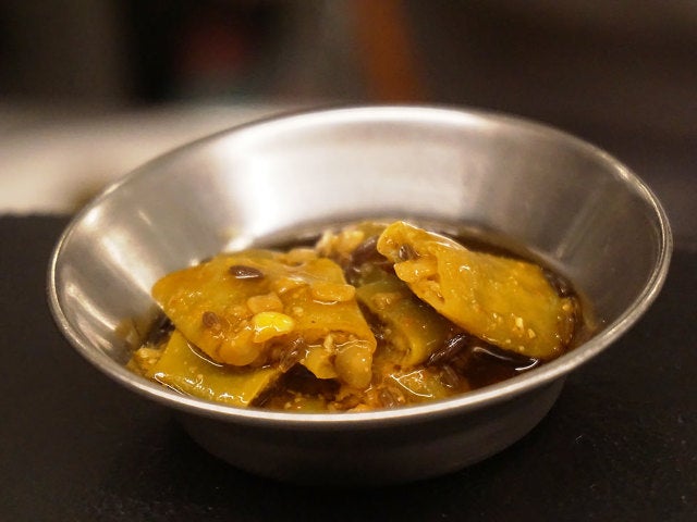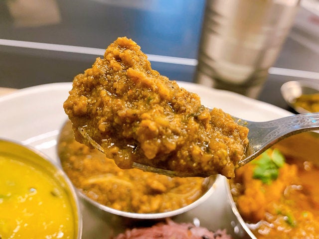 実山椒の刺激で痺れた舌を癒してくれるのが、ココナッツ特有の甘い香りが嬉しい「焦がしマスタードシードココナッツ」。だが食べ進むうちに、炒って黒くなるまで焦がしたマスタードシードの香りと辛みがジワジワ迫ってくる。種のプチプチした食感もクセになりそうだ。