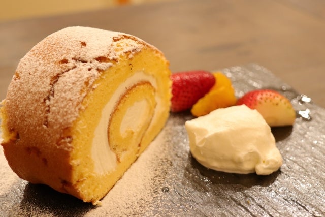ロールケーキの生地があれば、お好きなフルーツと生クリームで豪華なスイーツがつくれますよ。ローリングしてロールケーキにするのも良いですが、四角く切ってフルーツサンドにするのもおすすめです。
