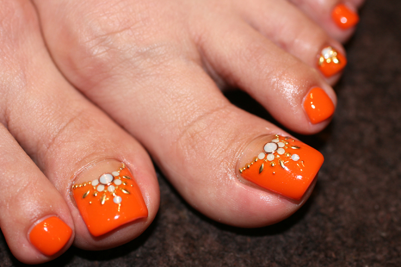 ぱきっとしたオレンジが夏らしい!シンプルだけど存在感のあるデザインがフットネイルにはぴったりですね♡