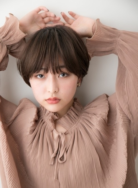 コンパクトで自然なフォルムが美しいナチュラルショート。まとまりやすくスタイリングも簡単です。シースルーバングにすることで、軽くて涼しげな印象に。