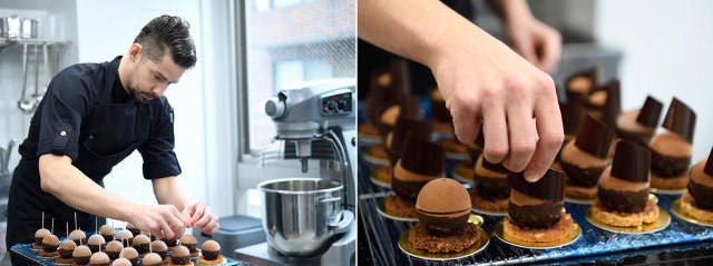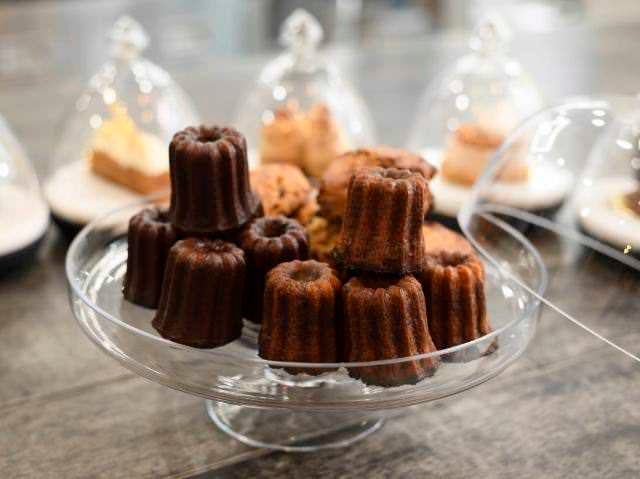 手土産のおすすめは、カウンター横で販売するカヌレ(写真上)。外はカリッ、中はしっとりのフランスの定番菓子も、マチュー氏の手にかかると繊細な味わいに。シンプルな工程だからこそ、日本とフランスの湿度の違いまで考慮しながら作成。現地の味を忠実に再現した一品ゆえ、贈った相手にも喜ばれること間違いなしだ。