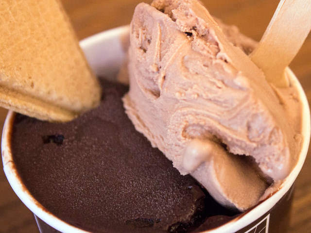 【3】フィレンツェ発! 職人仕込みの濃厚チョコジェラート専門店『ジェラテリア・エ・チョコラテリア・ヴィタリ』 イタリア生まれのチョコレートブランド『ヴィタリ』の魅力を堪能できる『Gelateria e Cioccolateria Vitali(ジェラテリア・エ・チョコラテリア・ヴィタリ)』は、職人が手がけるチョコレートジェラート専門店。店内のコールドケースに並ぶ16種類以上のジェラートのうち、約半分の8種類がチョコレートフレーバー。どのフレーバーも、ショップを取り仕切るシェフがイタリアのレシピそのままに再現している。