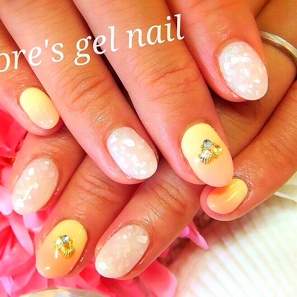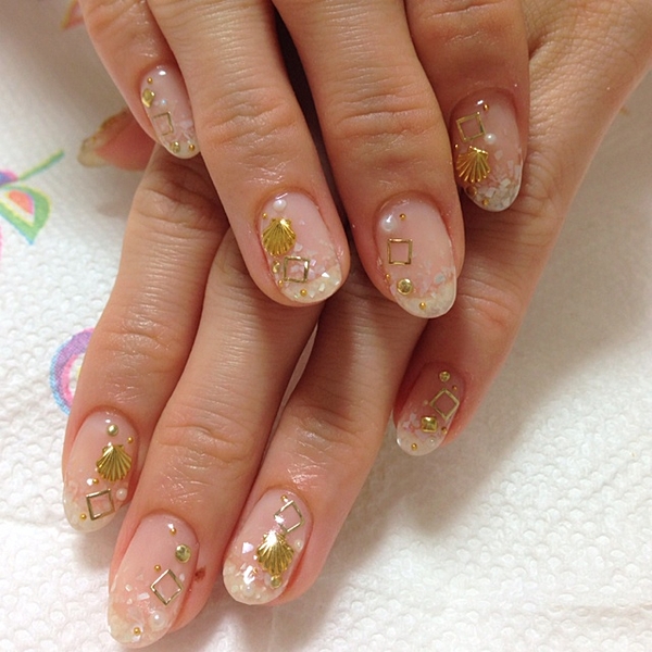 クリアベースに色んなシェル埋め込んでゴールド囲みネイル☆ だんだん夏らしいネイルが増えてきたかな?? http://t.co/jEVIuutO1q