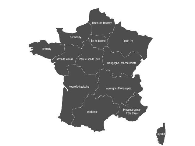 フランスの地域圏は大きく12(※特別地方公共・海外地域圏は除く)に分かれ、南はプロヴァンス、北はブルターニュ、東はシャンパーニュ、西はバスクなどが有名である。