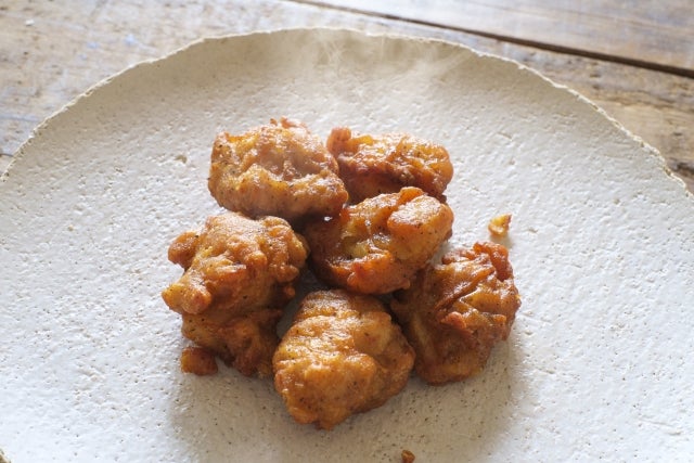 170度くらいの温度でこんがりと揚げます